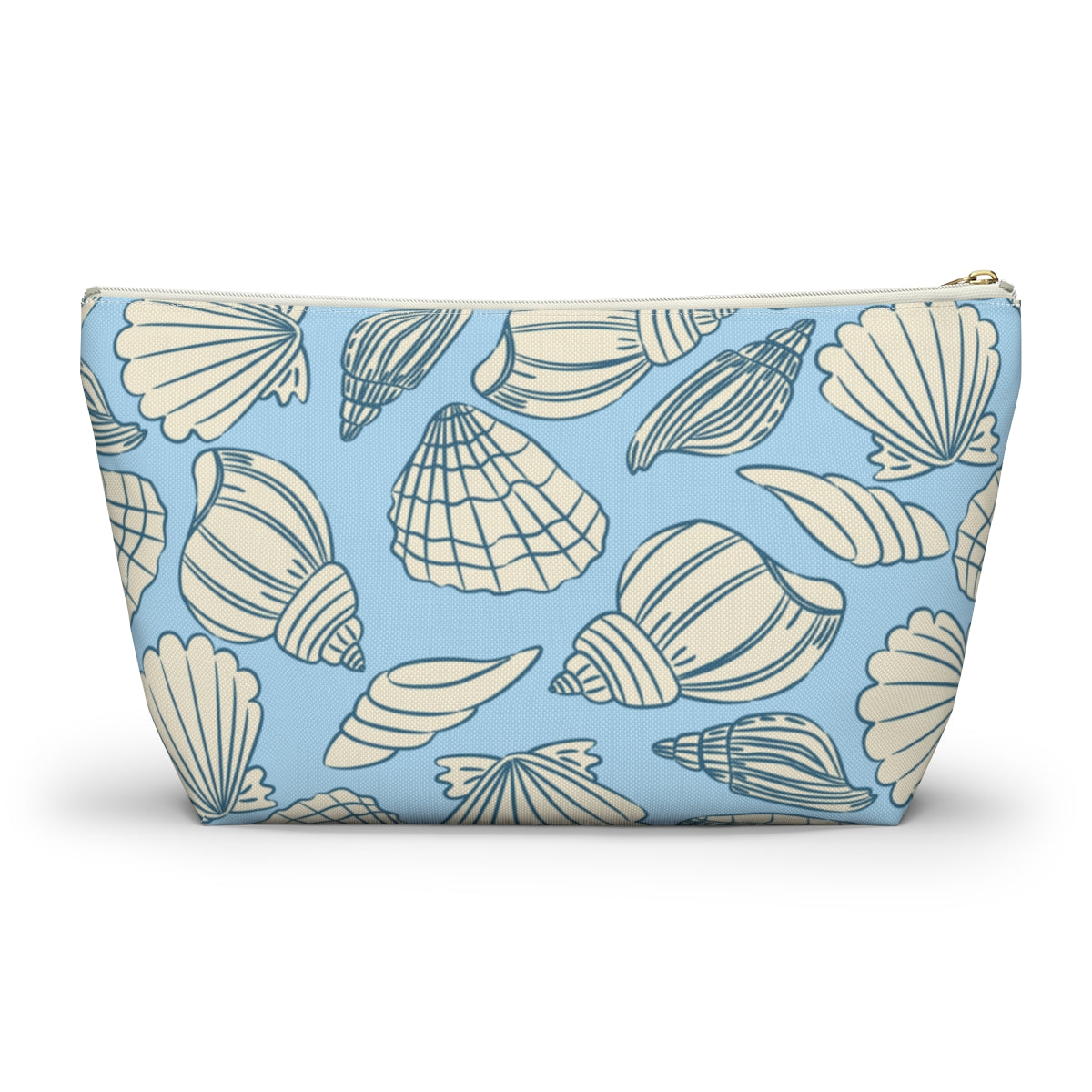 Personalized Seashell Cosmetic & Pencil Pouch – Coastal Blue Travel Bag